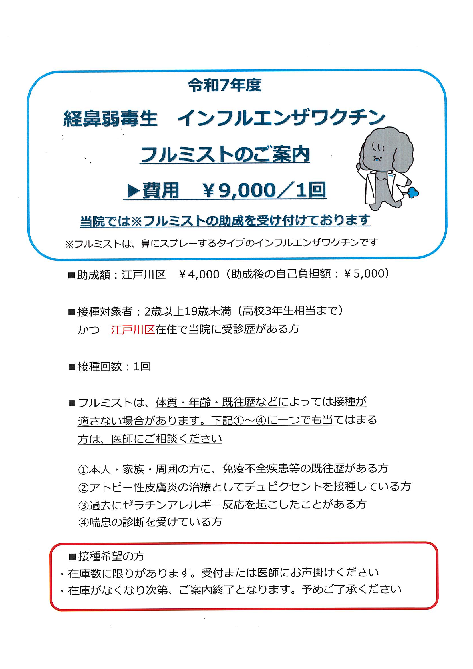 当院では『経鼻ワクチン:フルミスト』もご案内が開始となりました。